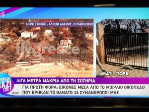 Τα ελληνικά τηλεοπτικά κανάλια και ιστότοποι όπως ANTENNA, SKAI, ENIKOS κλπ. έδειξαν τα εναέρια πλάνα μας από τις κατεστραμμένες περιοχές μετά τις θανατηφόρες πυρκαγιές από τον Ιούλιο του 2018 στο Μάτι, τη Ραφήνα και την Πεντέλη στην Αττική.
